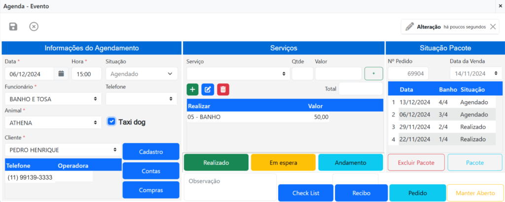 Os pacotes de banho e tosa são um dos principais atrativos do seu negócio. Com uma gestão eficiente, você pode criar e oferecer pacotes personalizados que atendam às necessidades dos seus clientes. Isso não só aumenta a satisfação, mas também potencializa suas vendas. Imagine poder oferecer promoções e pacotes especiais de forma rápida e prática!